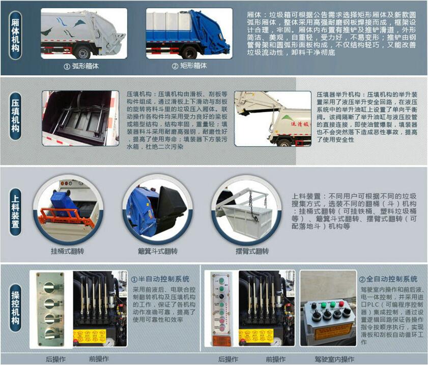 ★ 本公司投入高额成本引进国内外先进技术研发制造的每一台压缩式垃圾车,均择优采用国内外各款知名车辆底盘、发动机和取力器,性能更加稳定,上装部分由我公司申请专利的特有技术,解决了国内压缩式垃圾车普遍存在的作业噪声大及液压系统频繁故障问题,通过我公司优化改进后重新设计的液压系统和装载机构,提高了加工精度和装配质量,有效减少了作业噪音和故障率,改善了驾驶操作的舒适性,减轻了驾驶操作人员的劳动强度。截至目前,本公司产品连续7年全国销量***,越来越受到环卫部门、各垃圾清运公司的大力重视,多款高品质压缩式垃圾车已走出国门,远销海内外。欢迎全国各地环卫局***、经销商及终端客户来我公司实地参观、考查或来电订购,我们将竭诚提供优质的产品和服务。